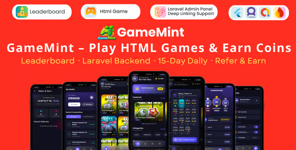 • GameMint v1.0 – Play & Earn HTML Games with Flutter and Laravel Backend